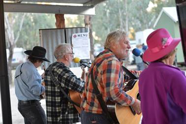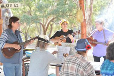 After the trivia we say back and enjoyed the beauty of the park, the ancient and incredibly beautiful gum trees, the Barwon river and the bird life whilst once more being entertained by some of the Jolly Rodgers and the talented members of our tag-along. |