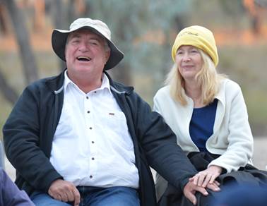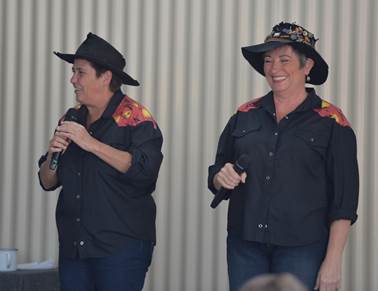 The ‘two short sheilas’, resident poets at the Caravan Park entertain us with their wit. |