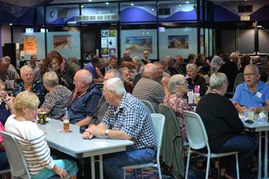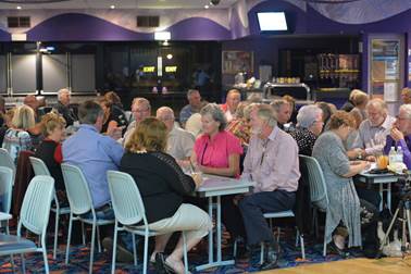 People enjoying dinner before the concert at the Bowling Club |