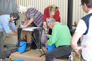 Milking the cows Testing the skills of Rob and Alan. Rob proved to be the vastly superior milker. |