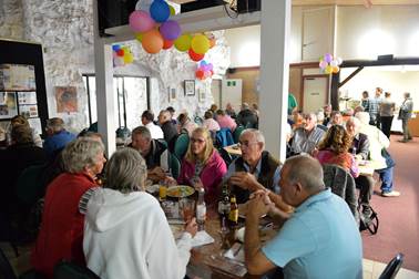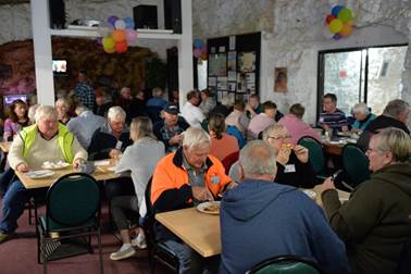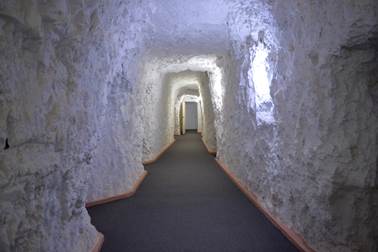 Concerts eight and nine were performed at White Cliffs. The first of these was at an underground motel. As the pictures show the evening started with a pizza, pasta and salad meal in the underground dining room. Very few of us had stayed in an underground residency before and it proved to be an intriguing experience. |
