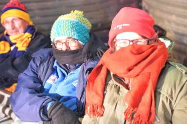 A description of ‘very cold’ would be more accurate as our entire tag-along group wrapped up against the chill. |