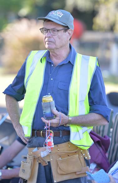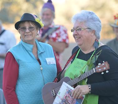 After many strenuous hours of Ukulele lessons throughout the tour, individuals were presented with a graduation certificate after which they displayed their many talents with a great concert. Every group has them. The Supervisor! Graham, dressed as the foreman, played his part admirably. |
