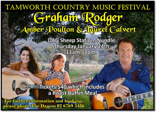 display of Tamworth 2019. Graham, backed by Trevor Tolton performs one of his